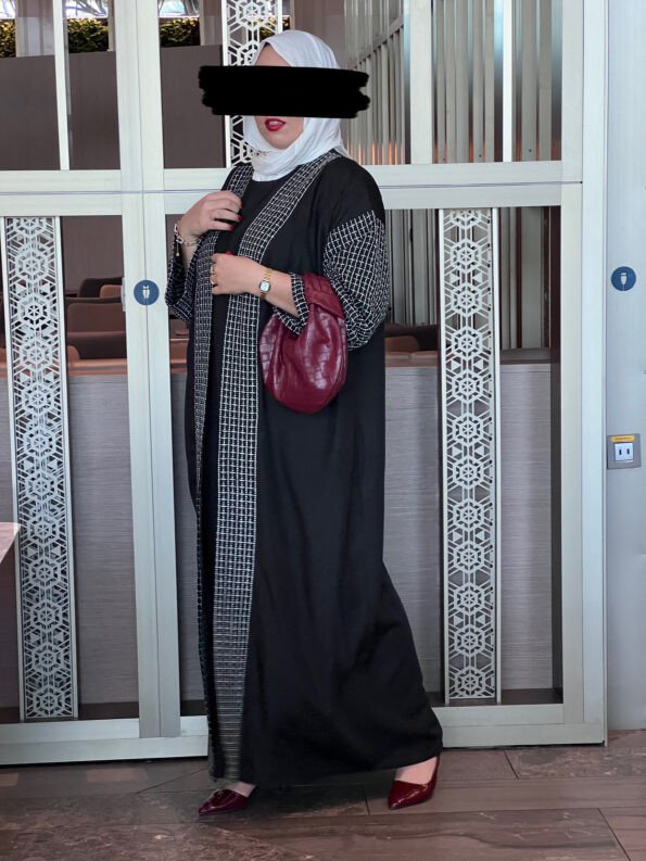 Alliez tradition et modernité avec cette sublime abaya noire et grise. Confectionnée dans un tissu fluide et confortable, elle est rehaussée de motifs discrets qui ajoutent une touche raffinée à votre style. Parfaite pour vos sorties quotidiennes ou vos événements spéciaux.