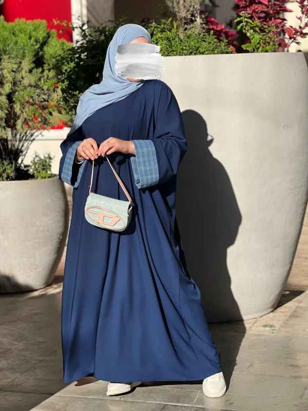 ✨ احصلي الآن على فستان الحجاب الأزرق بتفاصيل شانيل المميزة وكوني في قمة الأناقة والفخامة!